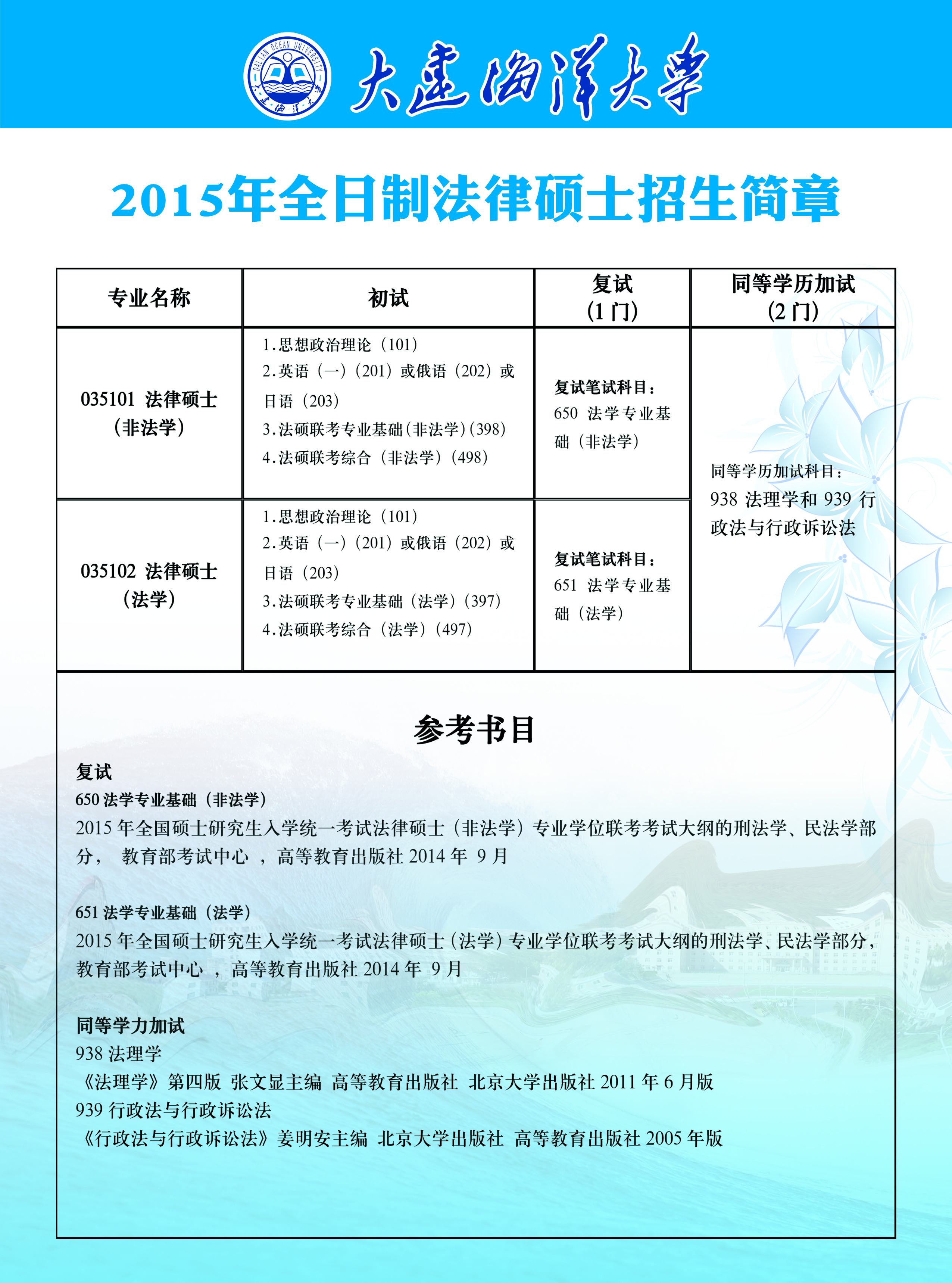 2015年全日制法律硕士招生简章