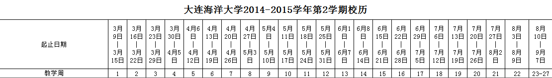 附:2014-2015学年第2学期校历