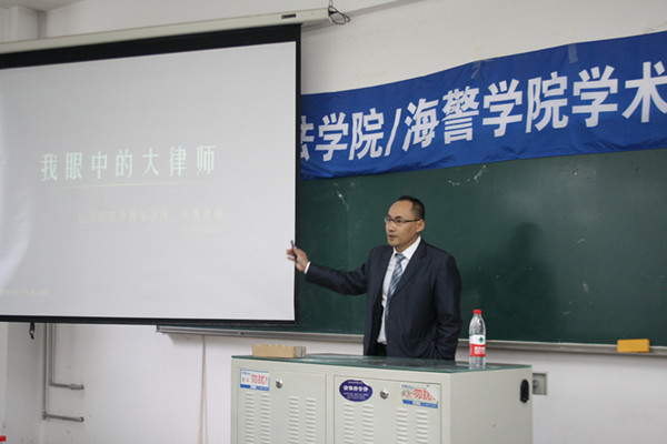 4月28日下午,法学院、海警学院第六期“走向深蓝:学术系列讲座”在獐子岛教学楼106室举行。辽宁昭明律师事务所合伙人吴凯律师应邀为学院师生作了题为“我眼中的大律师”的精彩演讲。