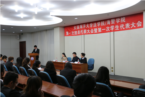 校团委副书记张潇月致辞,充分认可了法学院/海警学院在上一阶段的工作,同时对学院的下一阶段的发展提出了希望和建议,会上,学院党总支书记刘海廷立足当下,展望未来,对法学院团学工作提出了四点要求:一、希望广大青年树立正确的事业观、人生观、价值观,牢固树立远大的理想,坚定信念;二、希望广大青年学生刻苦学习,努力成才全面提升综合素质;三、希望团委及各团支部创优争先,开拓创新,推动学院共青团事业的跨越发展。四、希望全院学生干部提升能力,增强素质,积极投身共青团事业。随后,团委书记郭昕黎作《共青团法学院/海警学院第一次代表大会上的工作报告》,回顾总结了学院共青团工作的成绩和经验,明确了新时期共青团的主要责任,对今后的工作进行了部署和展望。往届学生会代表作了《法学院/海警学院第一次学生代表大会上的工作报告》。