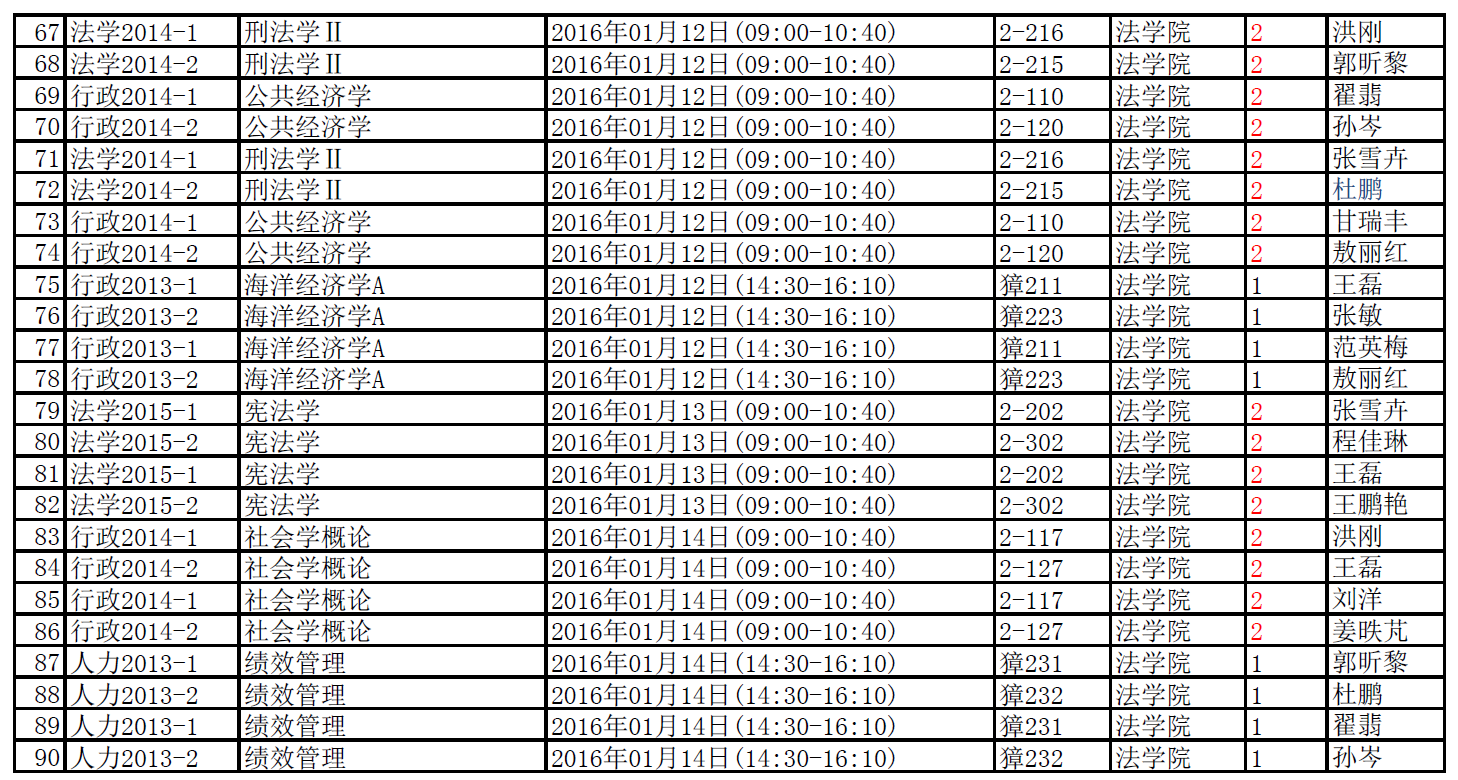 | 92 | 1310110105 | 薄景阳 | 行政2013-1 | 法学院 | 08:00-09:00 | 电423 |