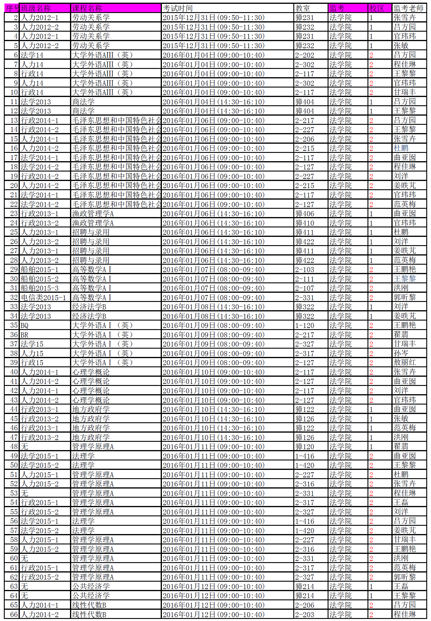 | 316 | 1510110212 | 张力文 | 行政2015-2 | 法学院 | 4日 | 10:00-11:20 | 407 |
