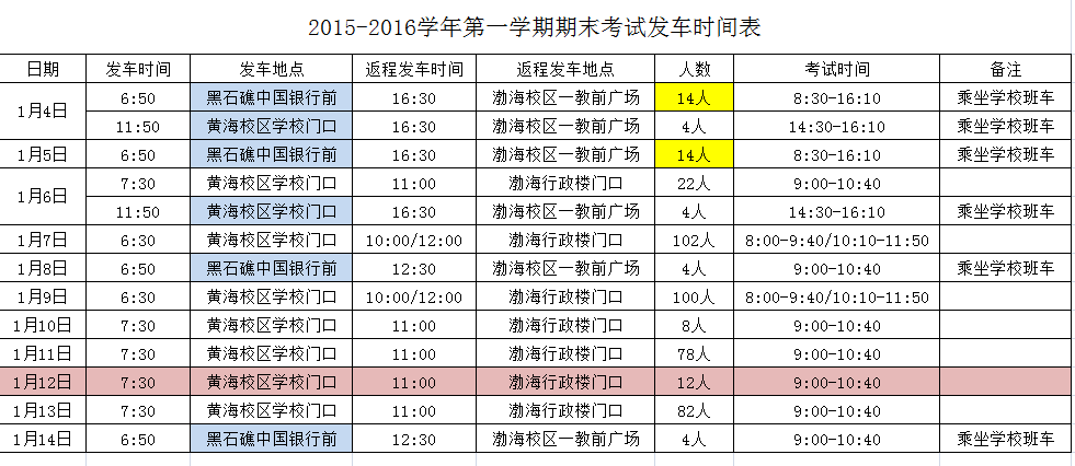 2015-2016学年第一学期期末考试发车时间表--给学院.xls