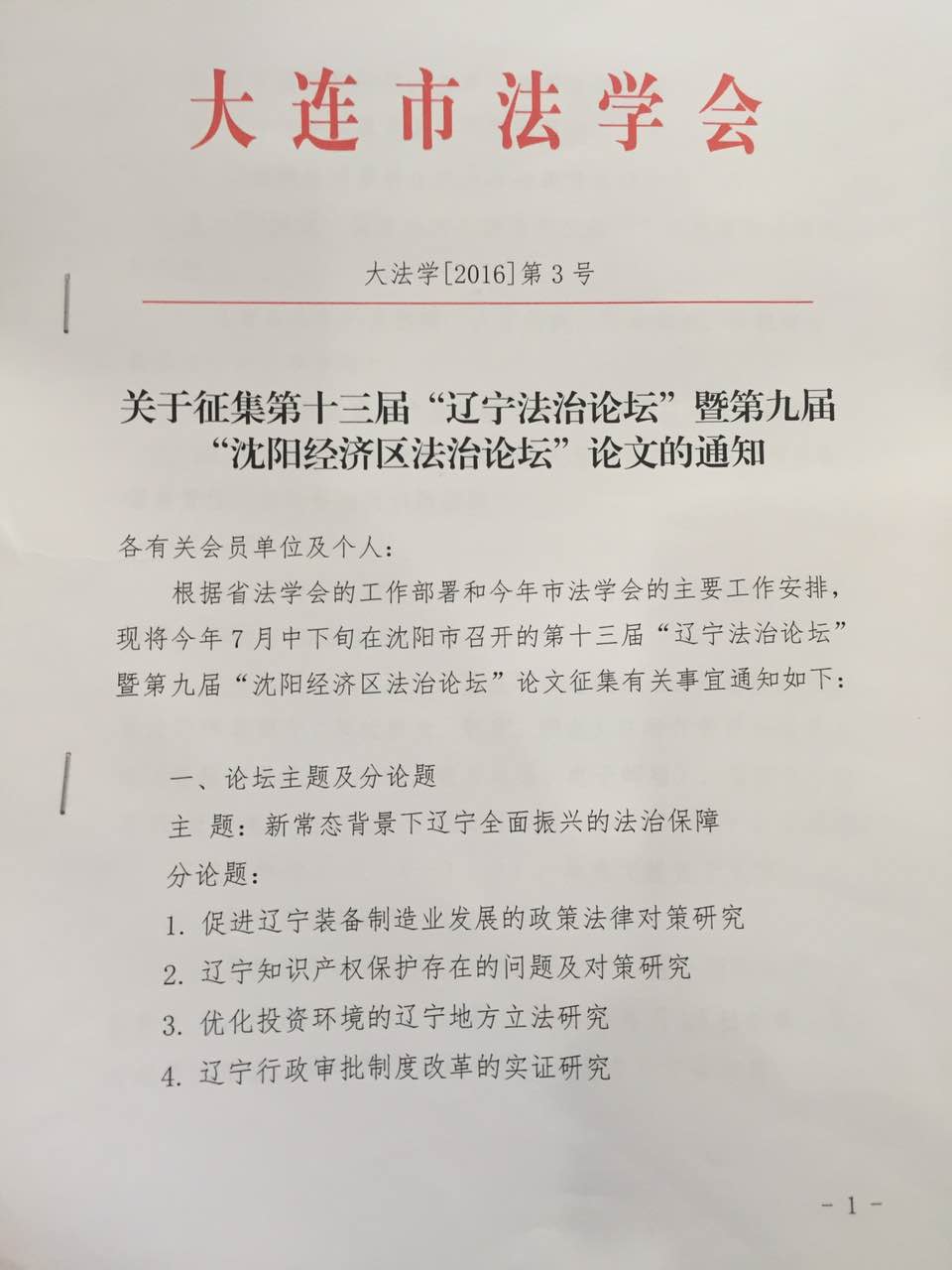 【学术会议】关于征集第十三届“辽宁法治论坛”暨第九届“沈阳经济区法治论坛”论文的通知