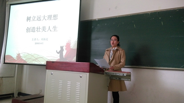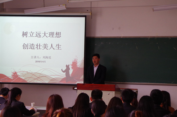 休会两分钟后,党总支书记刘海廷老师开展了主题为《树立远大理想,创造壮美人生》的讲座。刘海廷书记强调只有端正入党动机才能坚持党员为人民的原则,身为入党积极分子,要先做好当下的事,树立立远大理想,创造壮美人生。