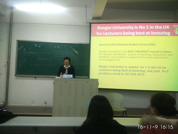 荆真老师首先以国际贸易法为切入点展开,重点讲述了国际贸易的成立要件、主体客体及其权利义务关系等知识要点,同时还就FOB和CIF两种国际贸易协议形式进行辨别区分。其次荆真老师向同学们介绍了班戈大学及其法学院法学教育的相关情况,荆老师在介绍班戈大学学校情况的同时还积极鼓励同学们走出国门,拓展眼界,继续深造。