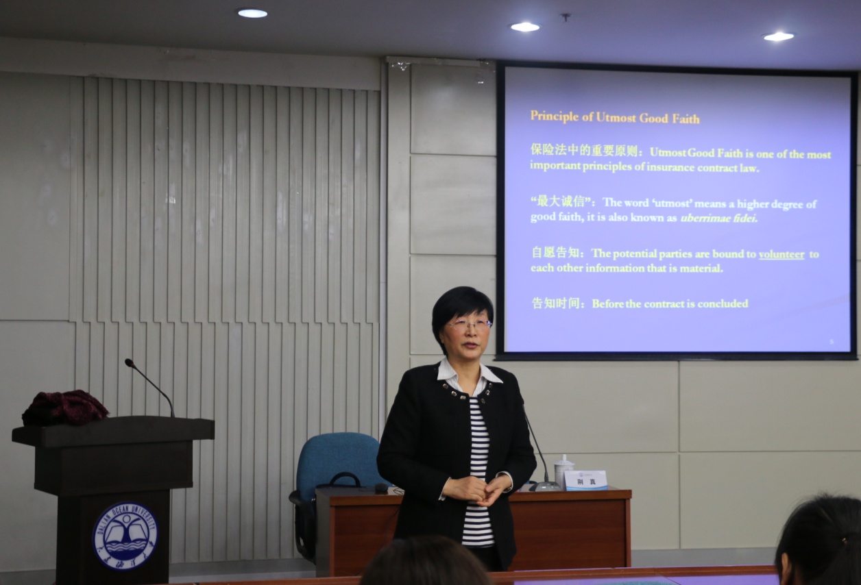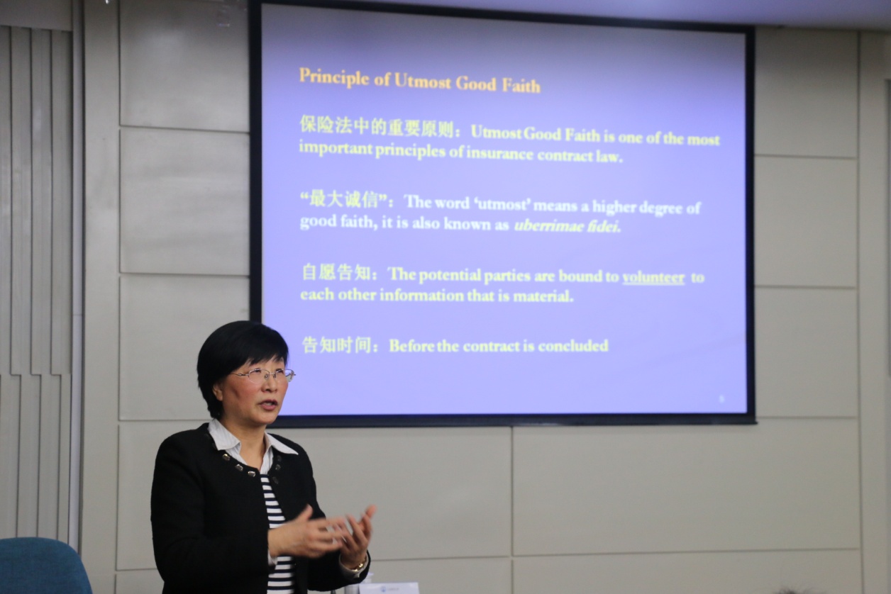 荆真教授围绕海上保险法中的诚信原则,详细介绍了该原则的起源、作用、本质、合理性、立法规定以及相关案例等,中英文交替,给师生带来一场精彩的讲座。讲座中荆真教授介绍了班戈(Bangor)大学总体情况和班戈(Bangor)法51吃瓜网概况 ,并就法学院现有授课型研究生项目(Taught LLM Programmes)和研究型研究生项目(LLM by Research)展开详细的介绍。班戈大学位于英国威尔士北部、沿海城镇班戈的中心,被思诺多尼亚国家公园壮观的海岸和山脉环抱,自然环境秀丽,适宜居住。班戈法学院成立于2004年,近年来发展迅速,在今年全英大学评比中综合排名全英32,在威尔士排名第一。