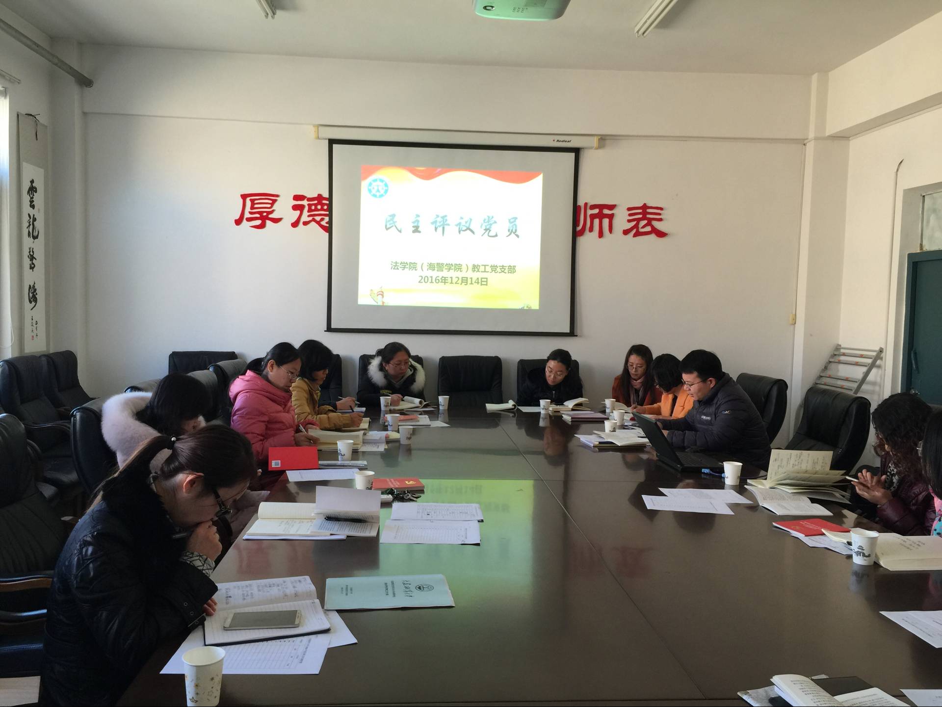 12月14日,法学院(海警学院)教工党支部在法学院会议室开展民主评议党员活动。按照我校《关于在“两学一做”学习教育中做好民主评议党员工作的通知》,学院领导以普通党员身份参加了党支部的民主评议活动。各位党员通过批评与自我批评,进一步明确了使命担当,增强了党员意识,从思想认识上进一步加深了对开展“两学一做”学习教育的认识。
