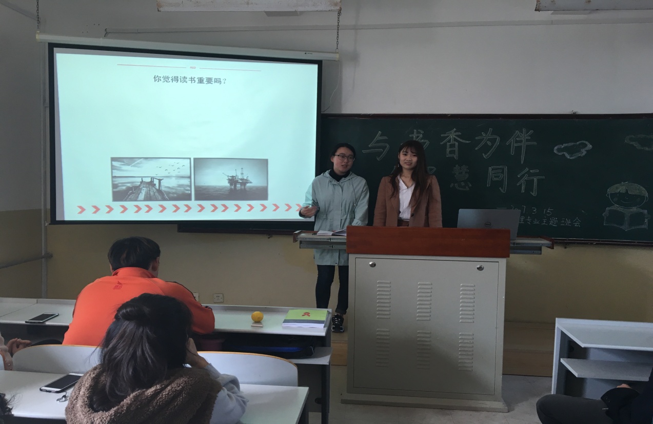 3月15日上午,法学院(海警学院)全体2016级行政管理专业学生在渤海校区一教204教室进行了以读书为主题的班会。班导师滕鹏出席此次班会。
