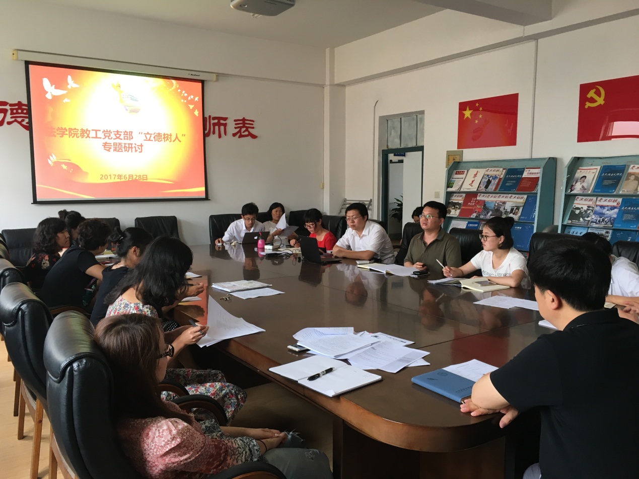 6月28日,法学院(海警学院)教工党支部在学院会议室组织集中开展“立德树人”专题研讨,学院全体教工党员参加。