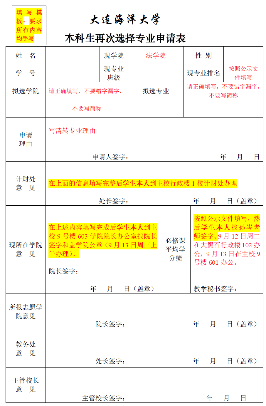 请按照下面注释填写转专业申请表。