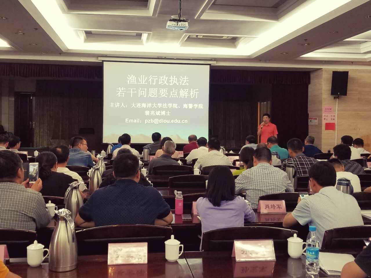 9月29日,山东省渔业执法人员培训在烟台市举行。在农业部渔业渔政管理局的统一安排下,法院院院长裴兆斌应邀为山东省渔业行政执法人员进行了授课。