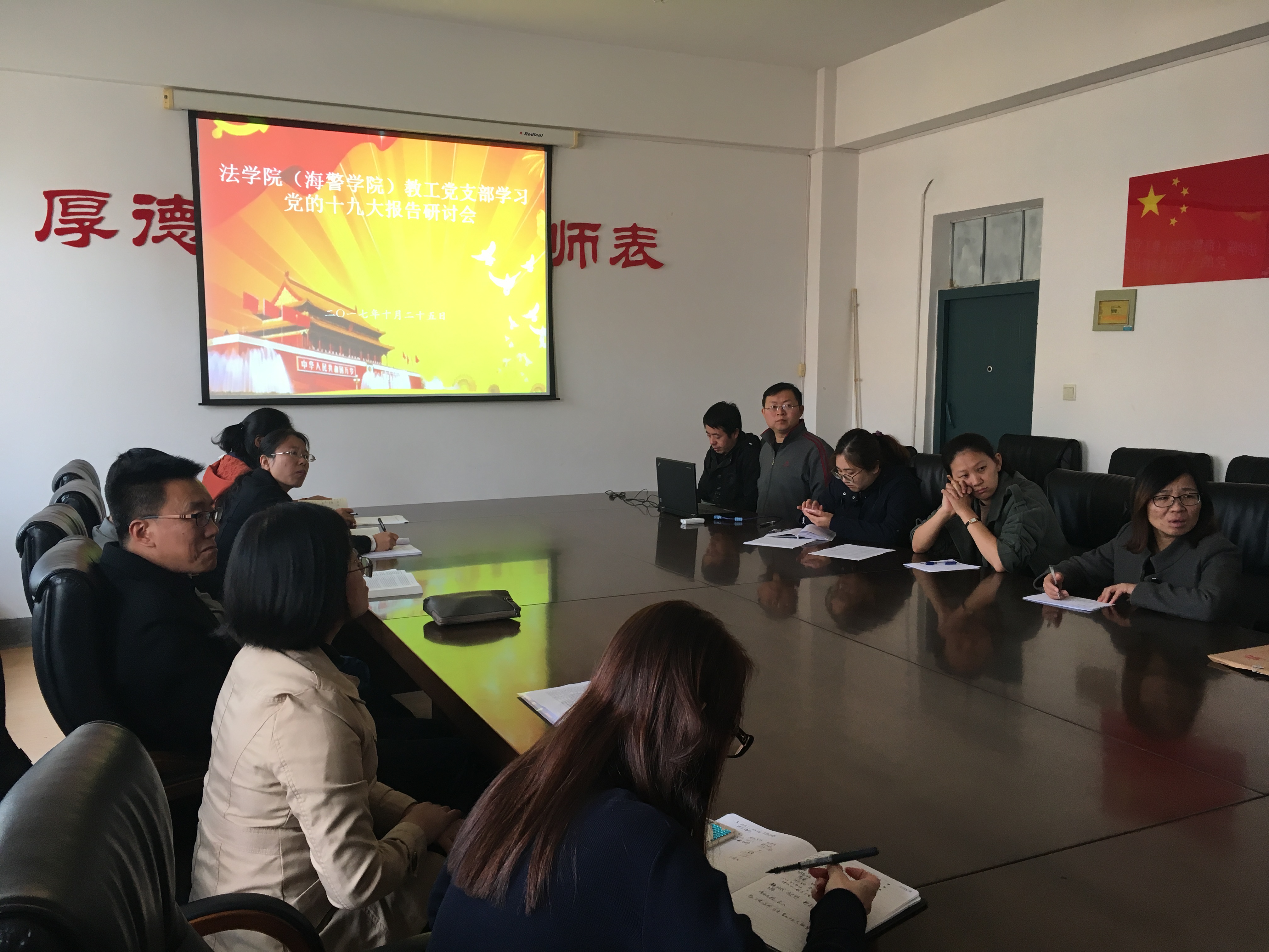 10月25日下午,法学院党总支在会议室召开党的十九大报告研讨会。全体教师参加了会议。会议由学院党总支书记刘海廷主持。