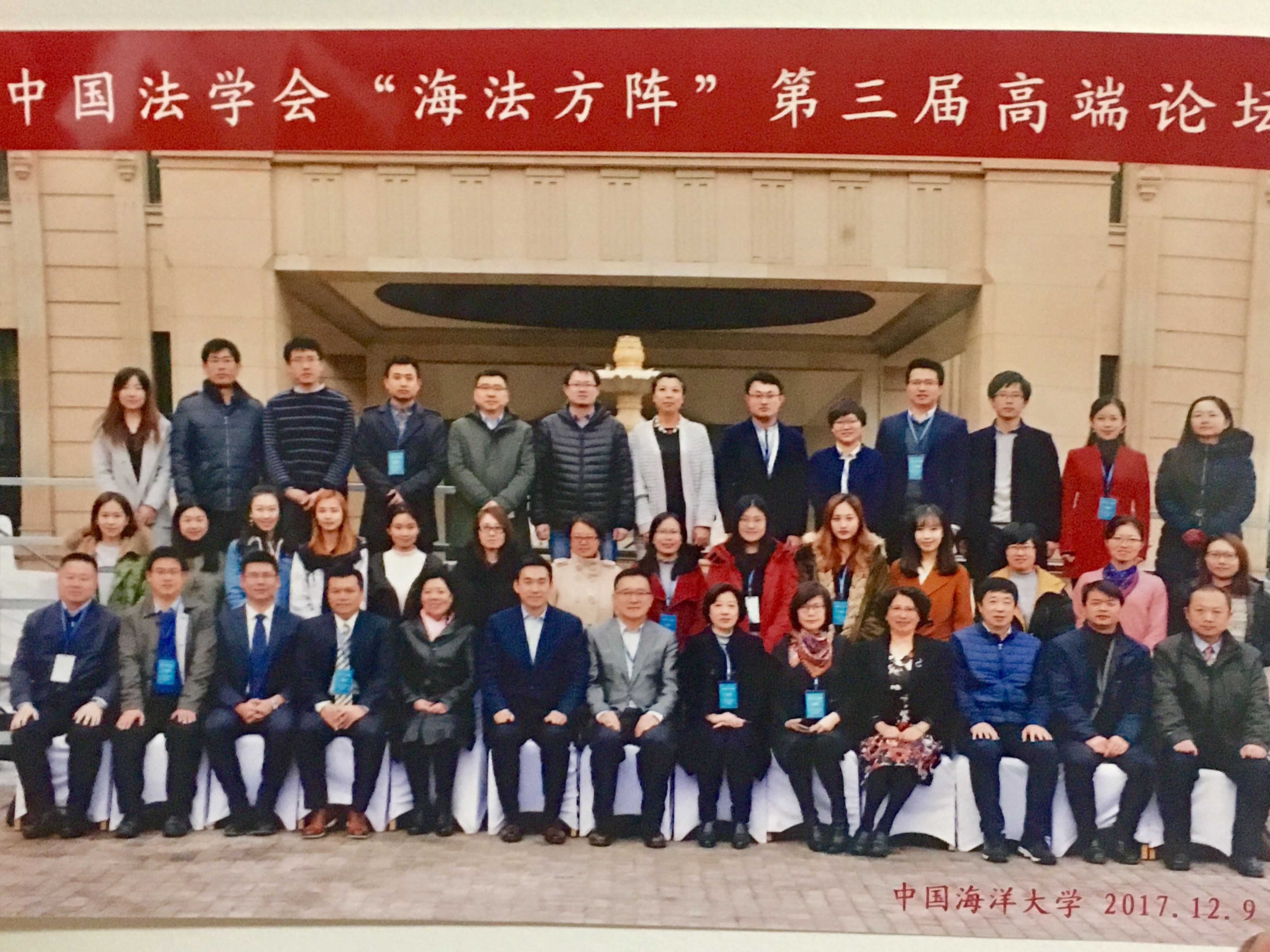 12月9日至10日,由中国法学会海洋法研究方阵主办,中国海洋大学承办的"海法研究方阵"第三届高端论坛在青岛希尔顿酒店召开,法学院(海警学院)院长裴兆斌、法学院(海警学院)副院长戴瑛应邀并带领学院法律硕士研究生参会。出席本次会议的还有中国法学会研究部、中国政法大学、山东大学、中国海洋大学、西北政法大学、武汉大学等部门科研单位和高校的业内知名专家学者。