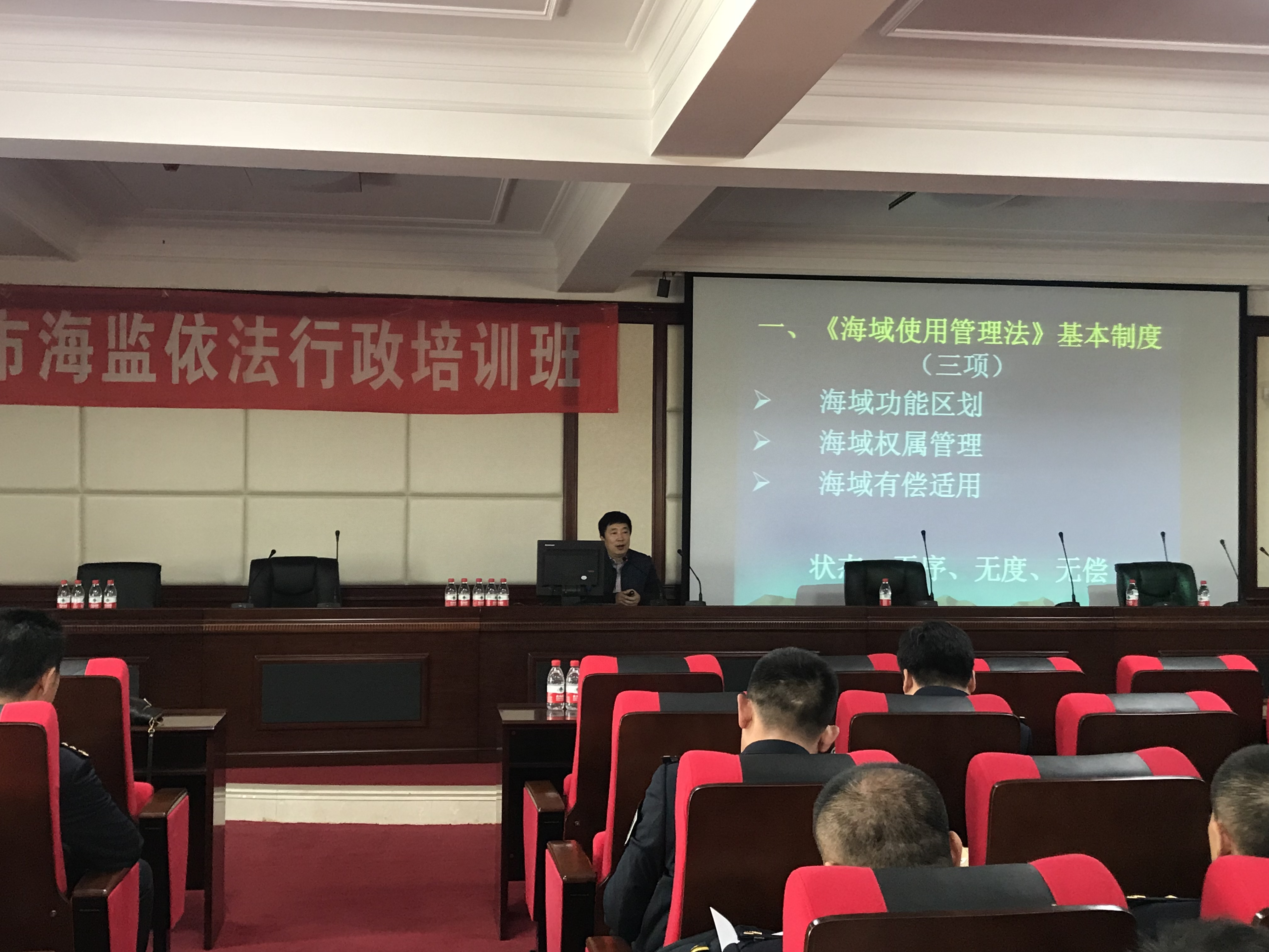 12月18日上午,受中国海监大连市支队邀请,法学院、海警学院院长裴兆斌在全市海监渔政依法行政培训班中为行政执法人员进行了集中培训。来自中国海监大连市支队的海域执法人员100余人参加了此次培训。