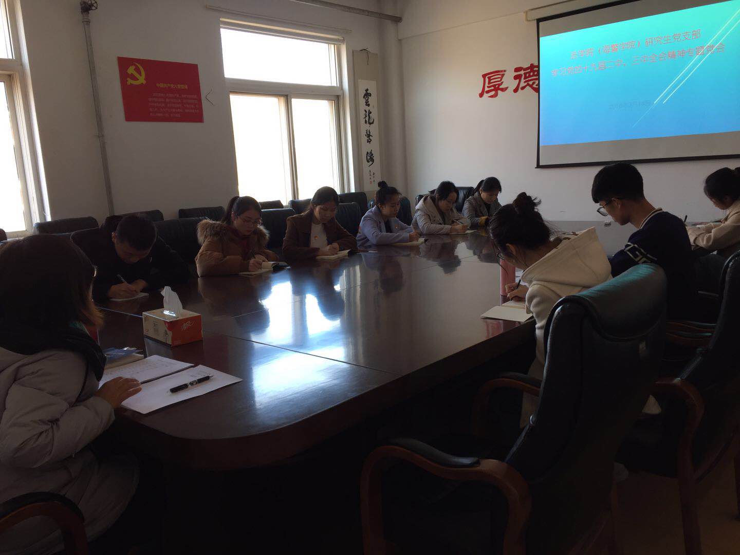 本次研究生党支部学习大会的最大的特色就是发挥集体力量共同完学习,这种共同学习的方式激发和调动了党员学习的积极性和主动性,让各位党员对党的十九届二中、三中全会精神有了更深刻的理解,学习之后各位党员针对全会精神展开了激烈的讨论。
