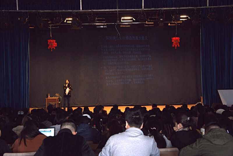 王黎黎博士介绍了我国宪法的历史发展过程以及此次宪法修正案的最新内容,阐明此次新宪法修改的重大历史意义,并与在场聆听讲座的各位学生交流了对此次宪法修改的认识和学习体会。宪法修正案的顺利通过,顺应了时代潮流,反映了党心和民心,集中体现了党的十九大精神,为新时代中国特色社会主义现代化事业的推进奠定了坚实的法律基础。全体师生仔细聆听、认真思考、深刻领会宪法修改的重大意义。