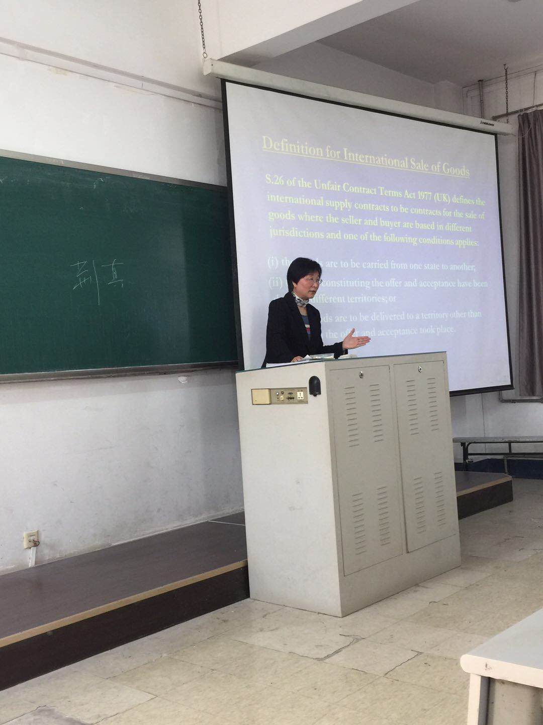 18年4月25日上午9点,英国班戈大学教授荆真在渤海校区2教202为 15、16级全体法学专业同学做了一次“国际贸易法与英国法学教育改革”的讲座,法学院(海警学院)刘洋老师主持了本次讲座。
