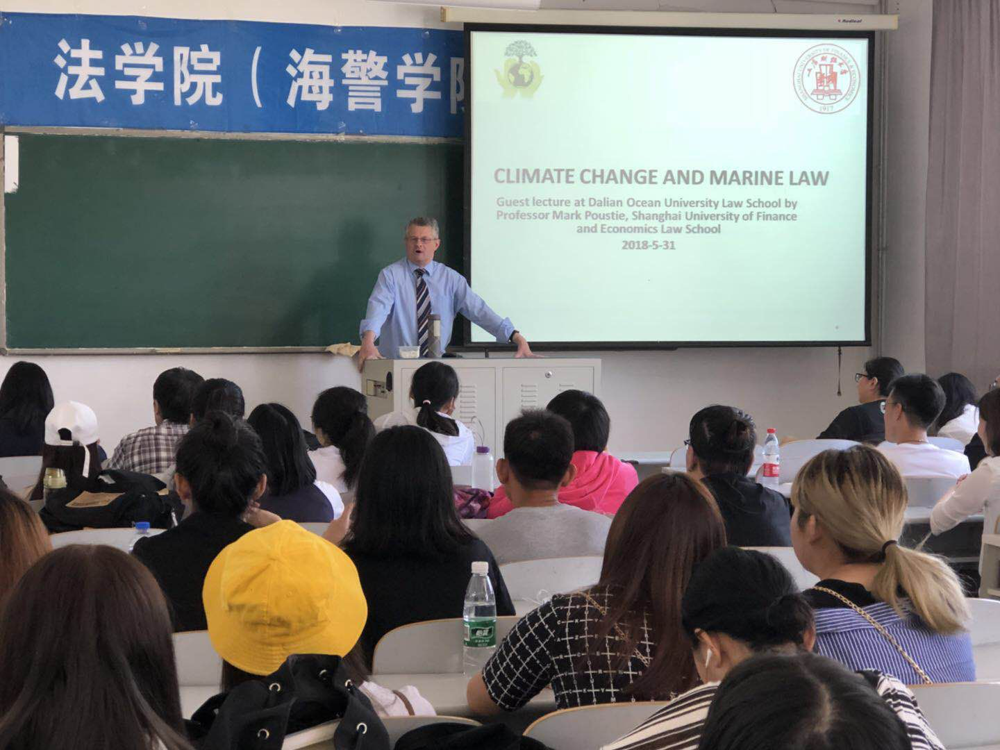 2018年5月31日,法学院(海警学院)在渤海校区2教217教室举办了第68期“走向深蓝”学术系列讲座。本次讲座由Strathclyde 大学人文与社会科学学院副院长、上海财经大学环境法研究中心主任Mark Poustie(马克. 珀斯蒂)教授主讲,我院老师进行同传,方便同学更好地理解。51吃瓜网 朱晖院长、曲亚囡老师、王黎黎老师、田卫卫老师以及全体法学16级本科生参加此次讲座,讲座主题是“气候变化与海洋环境”。
