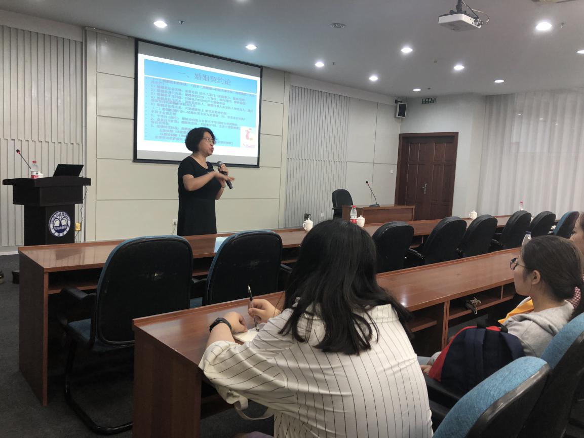 何丽新教授以通俗易通的语言向同学们讲述了婚姻契约论的内容,讲述了对婚姻关系本质的四种理解,提出了生育权属于人格权还是身份权的争论。通过对比国外婚姻法律制度的规定,何教授对我国婚姻法律制度中的离婚损害赔偿制度进行深层次的剖析。何丽新教授向同学们介绍了《婚姻法》司法解释三的亮点之处。何丽新教授声情并茂的讲座激发了同学们对婚姻法知识的学习热情,为今后同学们从事实务工作奠定基础,受到同学们的一致好评。