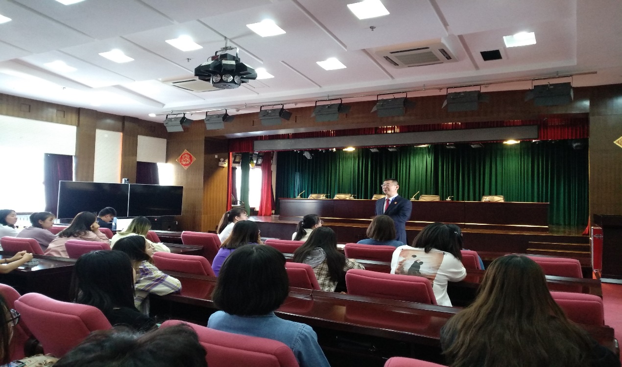 参观结束之后,大连海事法院郭庭长为同学们进行了一场精彩的报告。郭庭长为同学们具体讲解了大连海事法院的组织机构、职能定位,法学专业的职业规划以及他对工作、生活的个人体会,并与同学们进行了互动交流。同学们积极参与,各抒己见,认真学习相关的内容,圆满的完成了本次实践活动课程。
