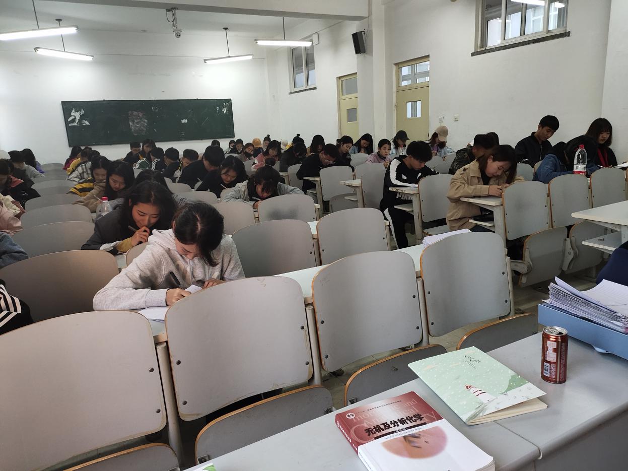 在二教217教室举行入党积极分子结业考试,本次考试由院学生会组织部监考,考前上交手机,确保所有考生都能做到诚信考试,遵循考场纪律。考试开始后,考生认真作答,教室里只能听见笔尖与纸张接触的声音,考场氛围良好。五点三十分,考试结束,考生有序上交试卷,按照考试流程井然有序进行,现场秩序良好。
