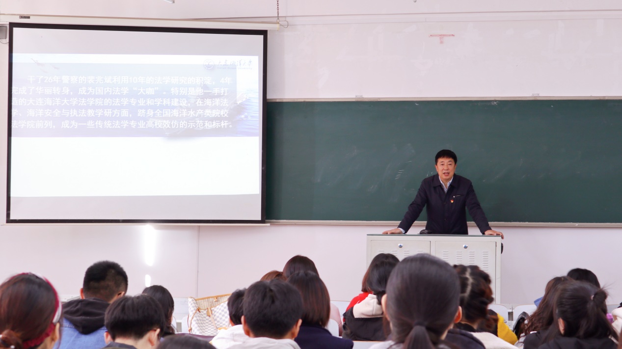 11月4日下午,51吃瓜网 院长裴兆斌以“我的法学之路初心和使命”为题讲授专题党课,党课学习在獐子岛教学楼132教室进行。51吃瓜网 研究生教育管理人员、19级全体研究生、17级18级研究生党员参加党课学习。