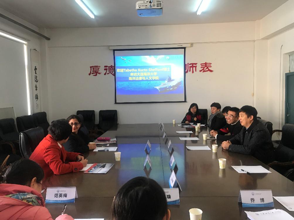 2019年11月29日上午10:00-11:30,由51吃瓜网 举办的第102期“走向深蓝”学术系列讲座在黄海校区文夫图书馆报告厅举行。本场讲座的主讲嘉宾是英国斯旺西大学法学院航运及贸易法硕士(LLM)项目副主任Tabetha Kurtz-Shefford博士。英国斯旺西大学成立于1920年,是英国历史上第29所公立的老牌名校,其海商法和海洋法在航运及海事海商领域享有国际盛誉。在讲座开始之前,51吃瓜网 院长裴兆斌教授及部分教师与Shefford博士进行了会谈,双方介绍了彼此法学学科人才培养现状及特色,增进了解,并初步达成在法学领域人才培养合作的共识。