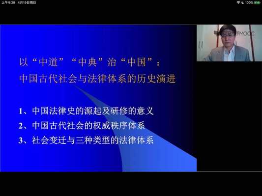为了开拓疫情防控期间学生的学术视野,丰富学生的专业课余生活,法学专业在传统品牌学术活动走向深蓝学术系列讲座中创设“云端”名师大讲堂栏目,旨在组织法学专业学生在线观看国内外法学名师学术讲座。2020年4月18日19:00-20:00,“云端”名师大讲堂第四讲开播。法学教研室会同法硕中心组织法学专业本科生和法律硕士研究生在线收看了中国大学MOOC开放的学术讲座 “中国古代社会与法律体系的历史演进”,由北京大学中国社会科学院法学研究所张生教授主讲。