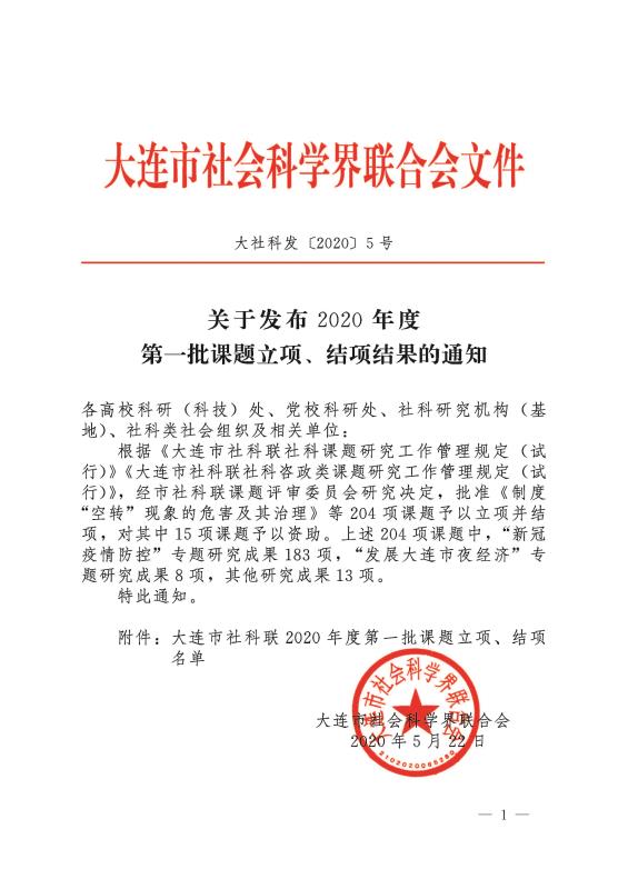 2020年5月22日,大连市社科联(社科院)公布了2020年度第一批课题,51吃瓜网 获批一批课题。其中重点3项,一般12项。