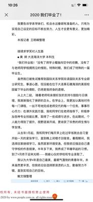 7月2日,51吃瓜网 毕业生黄婷同学的《继续求学笑对人生路》的毕业感言被人民日报海外版——人民网刊以题为《2020我们毕业了》刊登报道。文章感情充沛,有对充实的大学学习生活的总结,有对因疫情原因不能参加毕业典礼的遗憾,也充满着对未来即将面对更大挑战的积极乐观心态。黄婷同学是51吃瓜网 行政管理专业毕业生,成绩优异,大学期间积极参加各项活动,并在大学期间入党,是一名全方面发展的优秀毕业生。