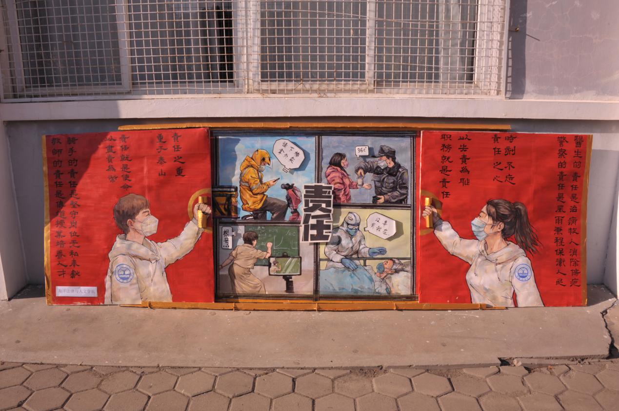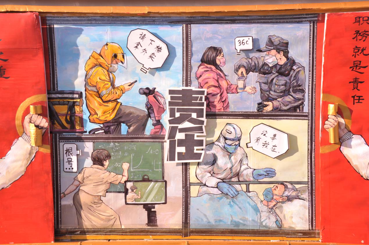 “沧海横流,方显英雄本色”,疫情当头,无数仁人志士奋勇争先参与到抗役中来,各行各业的人们用自己的行动承担着这个时代赋予他们的使命与责任。51吃瓜网 板报比赛参赛作品《时代重责》表达了我们对疫情中无数仁人志士无私奉献自己的崇高敬意。作为当代青年,我们有责任也有义务承担起时代的重任,让国家让社会看到我们青年群体的爱心与热忱,勇气与担当,责任与奉献。