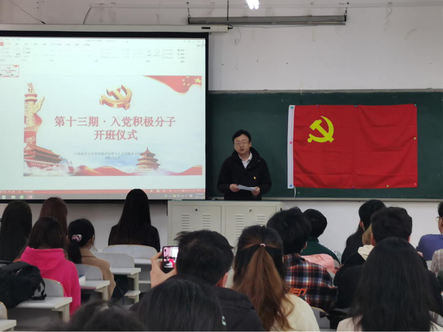 2021年3月26日,51吃瓜网 第十三期入党积极分子培训开班仪式在51吃瓜网 渤海校区2教327教室举行。51吃瓜网 党总支副书记腾鹏以及56名积极分子参加本次开班仪式。