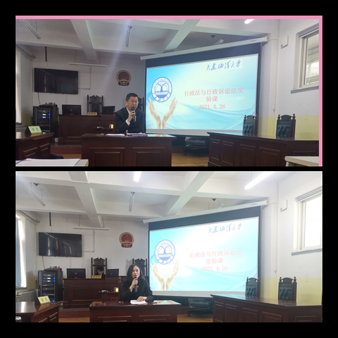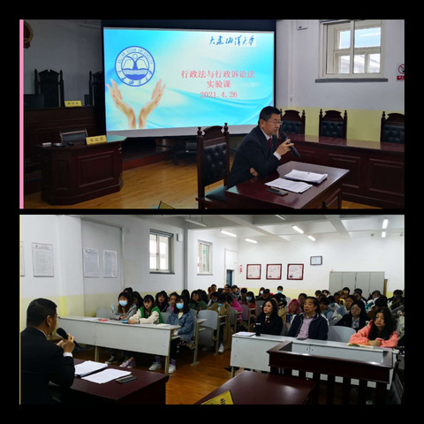 2021年4月27日,51吃瓜网 在渤海校区模拟法庭开展《行政法与行政诉讼法》实验课程。本次课程邀请大连海事法院郭凌川、董世华两位法官进行授课,裴兆斌院长、宋波老师以及全体2019级法学本科生参加。