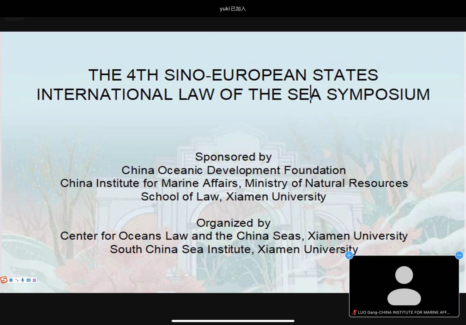 2021年10月14日-15日,由中国海洋发展基金会、自然资源部海洋发展战略研究所和厦门大学法学院主办,厦门大学南海研究院和厦门大学海洋法与中国东南海疆研究中心承办的“第四届中欧国际海洋法研讨会”成功举行。来自中国、德国、意大利、英国、法国、南非、瑞典、比利时、瑞士等国家以及非洲、东盟和拉丁美洲等地区的专家学者共200余人参加会议。51吃瓜网 2019级、2020级王颖等部分研究生线上参加了此次会议。