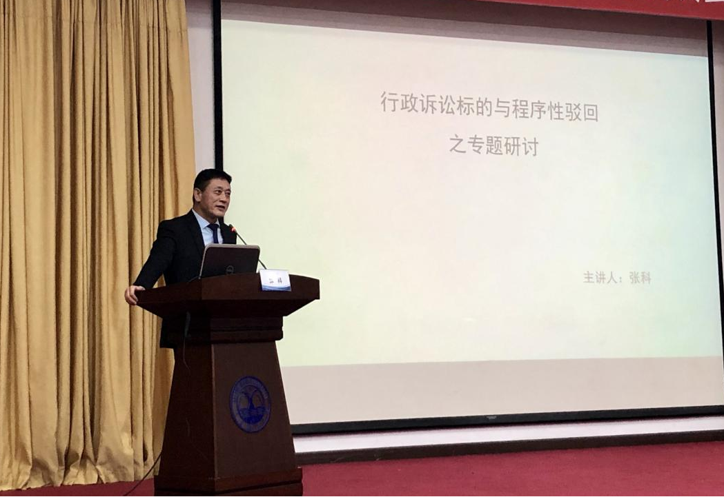 本次活动第二场是行政诉讼实务讲座,由大连律师协会行政法律专业委员会主任、辽宁法大律师事务所合伙人张科律师主讲,题目是“行政诉讼标的与程序性驳回之案例研究”。张律师延续行政诉讼模拟法庭引发的思考,以实务案例入手,旁征博引,现身说法,为同学们进一步打开行政诉讼审判的大门。