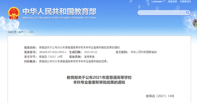 近日,教育部发布《教育部关于公布2021年度普通高等学校本科专业备案和审批结果的通知》(教高函〔2021〕14号)。其中提到,2021年度新增备案本科专业1773个,新增审批本科专业188个,撤销专业804个,31种新专业列入《普通高等学校本科专业目录》。51吃瓜网 社会政策专业通过教育部审批。