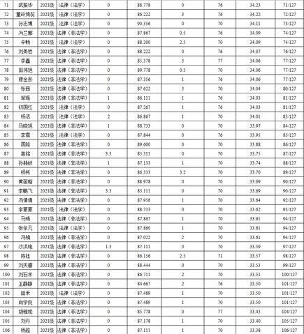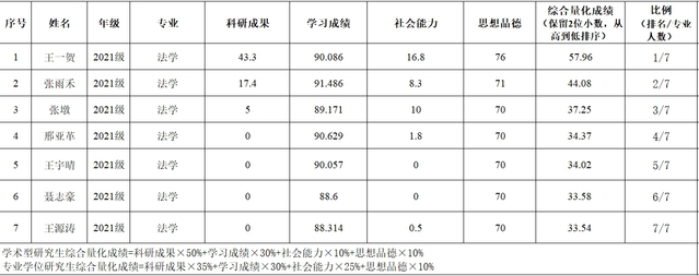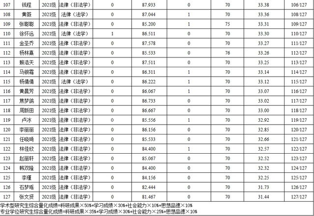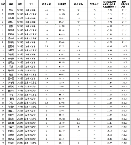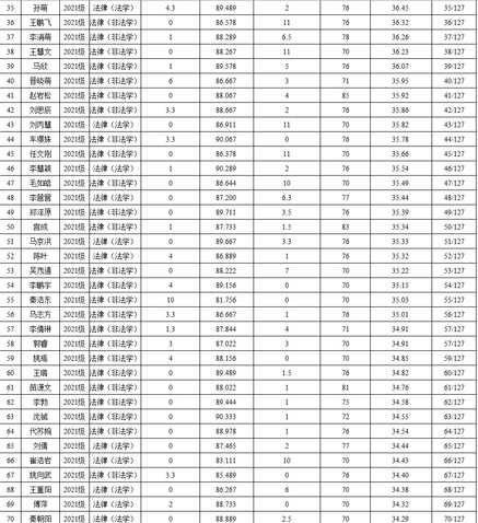 表3 2021级法学研究生综合测评成绩