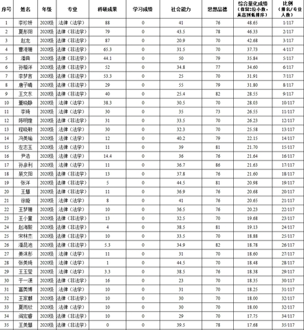表1 2020级法学研究生综合测评成绩