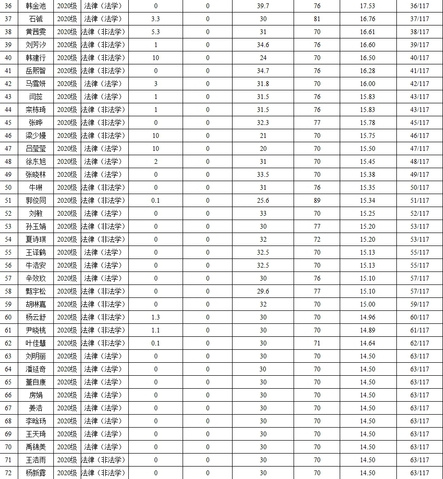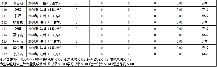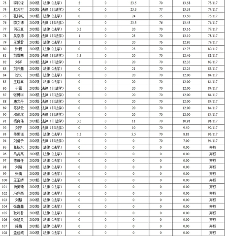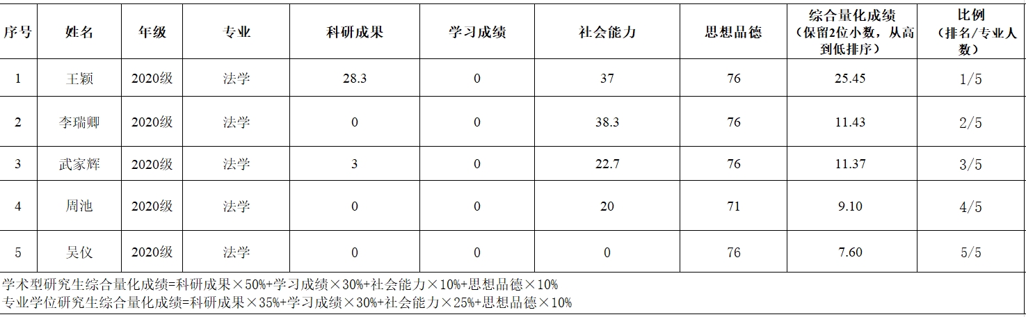 表2 2020级法律(法学、非法学)研究生综合测评成绩
