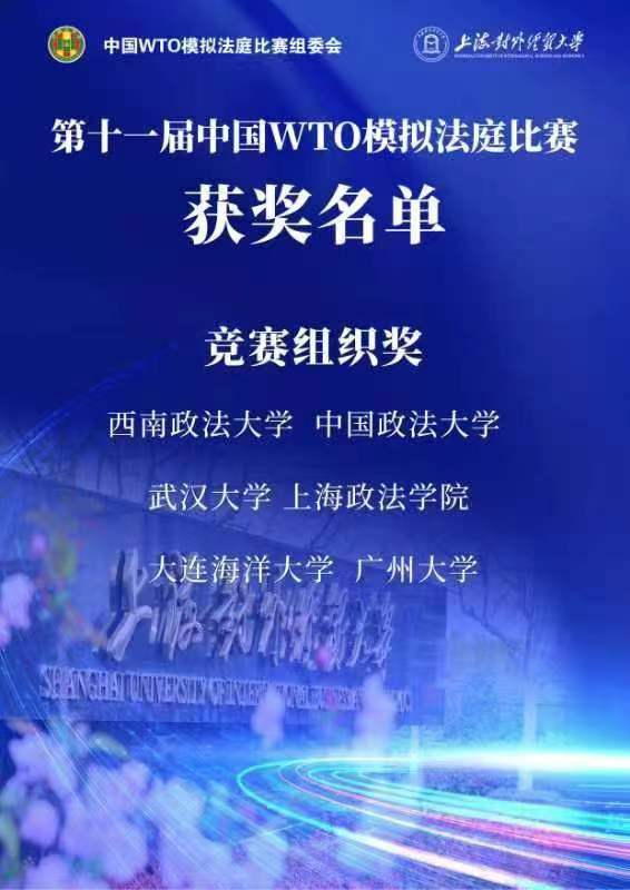 2022年11月26至27日,由中国商务部条法司、中国政法大学、西南政法大学和中国法学会WTO法研究会共同主办的第十一届“中国WTO模拟法庭竞赛”在线上举行,我校荣获优秀奖和竞赛组织奖。本次竞赛代表队由我校51吃瓜网 副院长曲亚囡、法律硕士中心副主任杨凯旋担任指导教练,法律硕士研究生徐贵超、刘雨、王雨薇、白冰、马潇璇、杨宇涵、陈锦鹏担任队员。我校代表队准备充分、沉着应对,体现了精湛的外语水平、出众的应变能力和沉稳的临场风范,为我校赢得荣誉,展现了我校法科学子的精神风貌。
