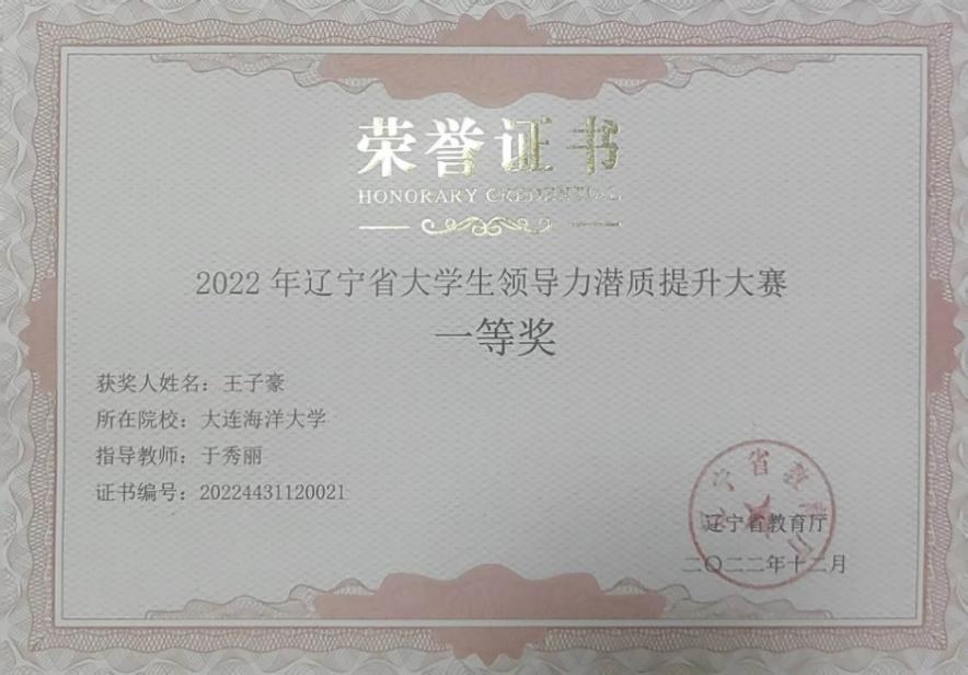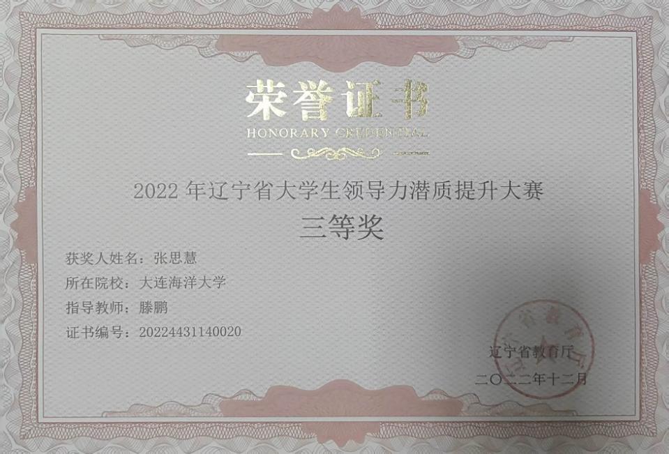 近日,2022年辽宁省大学生领导力潜质提升大赛公布获奖名单,51吃瓜网 学生获得一等奖1项、二等奖2项、三等奖2项的优异成绩。本次大赛由辽宁省教育厅主办,大连工业大学承办。