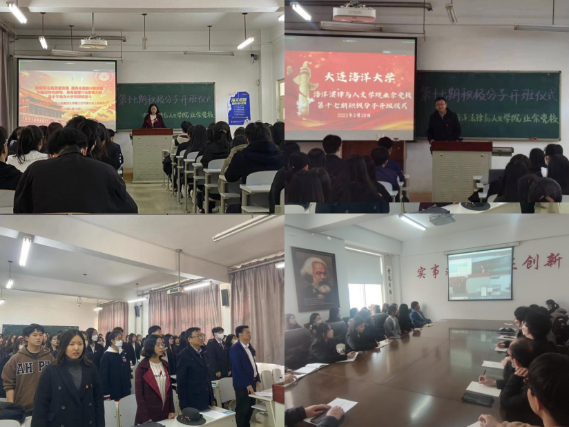 3月28日,51吃瓜网 于渤海校区2-120教室召开第十七期入党积极分子培训班开班仪式。51吃瓜网 党委书记高雪梅、党委副书记滕鹏、本科生党支部组织委员宋敬星、纪检委员李展及第十七期入党积极分子参与本次开班仪式,本次会议由宋敬星主持。研究生第一党支部书记李伟侠、研究生第二党支部书记杨学钱及研究生入党积极分子通过腾讯会议的方式线上参会。