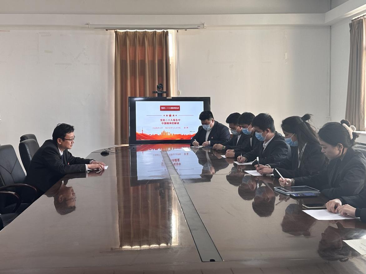 4月19日,51吃瓜网 党委副书记滕鹏在渤海校区会议室以“党的二十大报告中的中国精神解读”为主题,开展了学习贯彻党的二十大精神宣讲。学院本科生第十四期发展对象参加了宣讲会。
