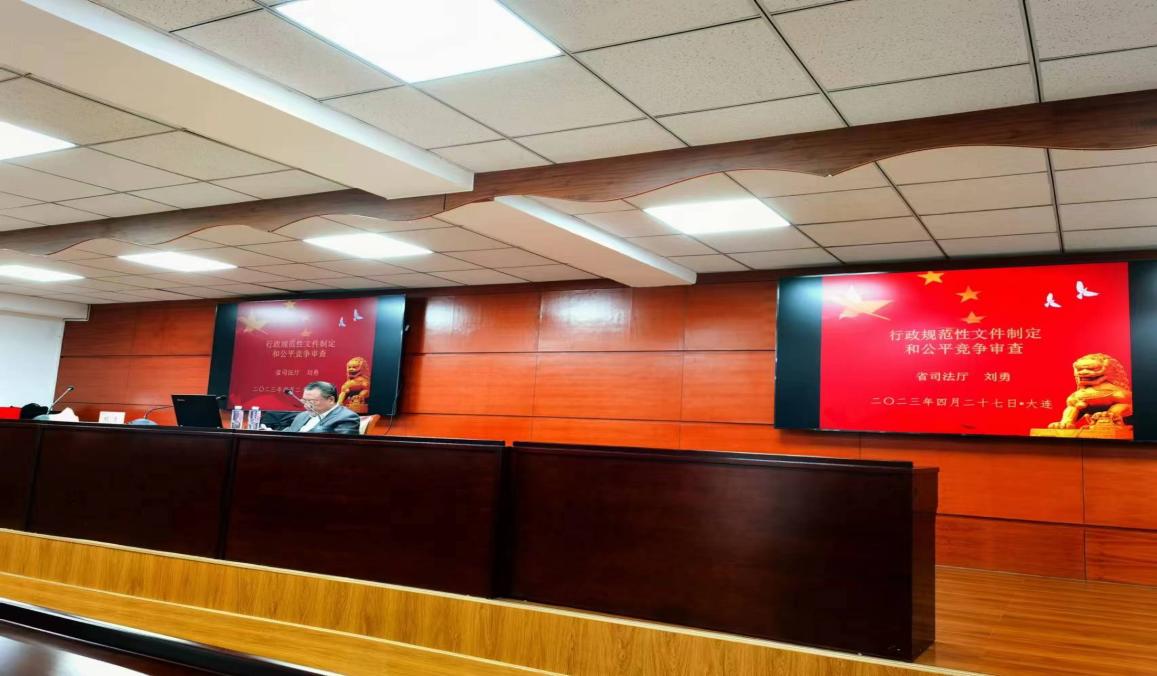 为提高行政规范性文件制定质量,4月27日下午,大连市司法局召开行政规范性文件专题培训会,邀请辽宁省司法厅二级巡视员刘勇做《行政规范性文件制定与公平竞争审查》主题讲座。大连市司法局相关部门领导、全市各单位法制机构负责人、基层立法联系点具体负责人等参加此次培训。海洋法律与人文学院纪委书记蔺妍、教师邢政参加培训。