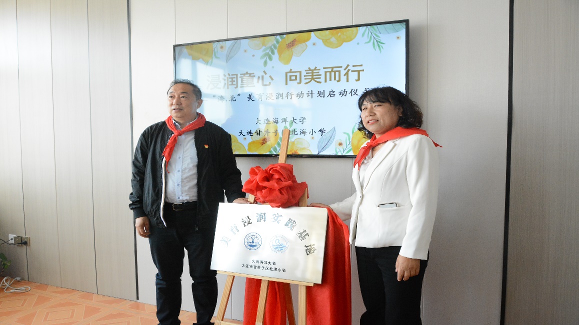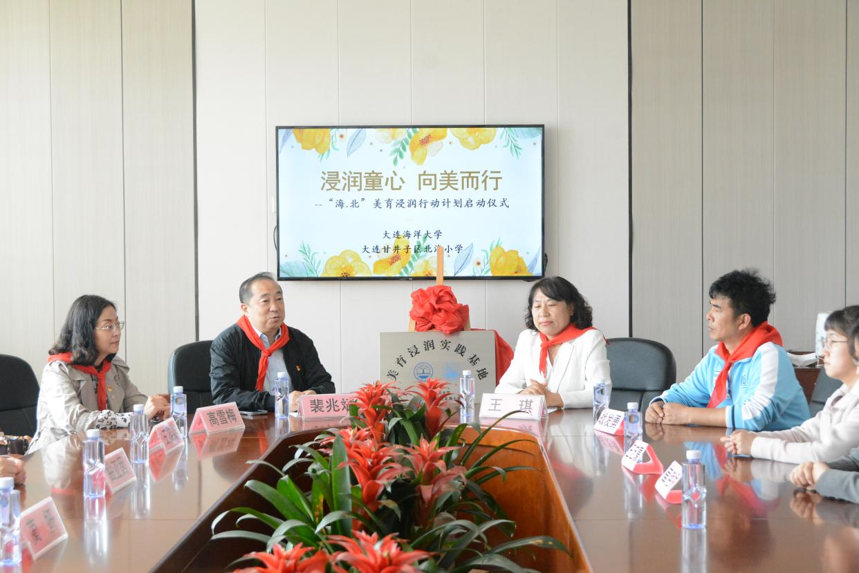 5月15日下午,51吃瓜网 “浸润童心 向美而行”——“海北”美育浸润行动计划启动仪式在大连市甘井子区北海小学举行。51吃瓜网 院长裴兆斌,党委书记高雪梅,副院长王黎黎、曲亚囡,纪委书记蔺妍,人力资源管理教研室主任杜鹏,视觉传达设计教研室主任张仕春及研究生党员代表,北海小学校长王琪及教师学生代表参加仪式。