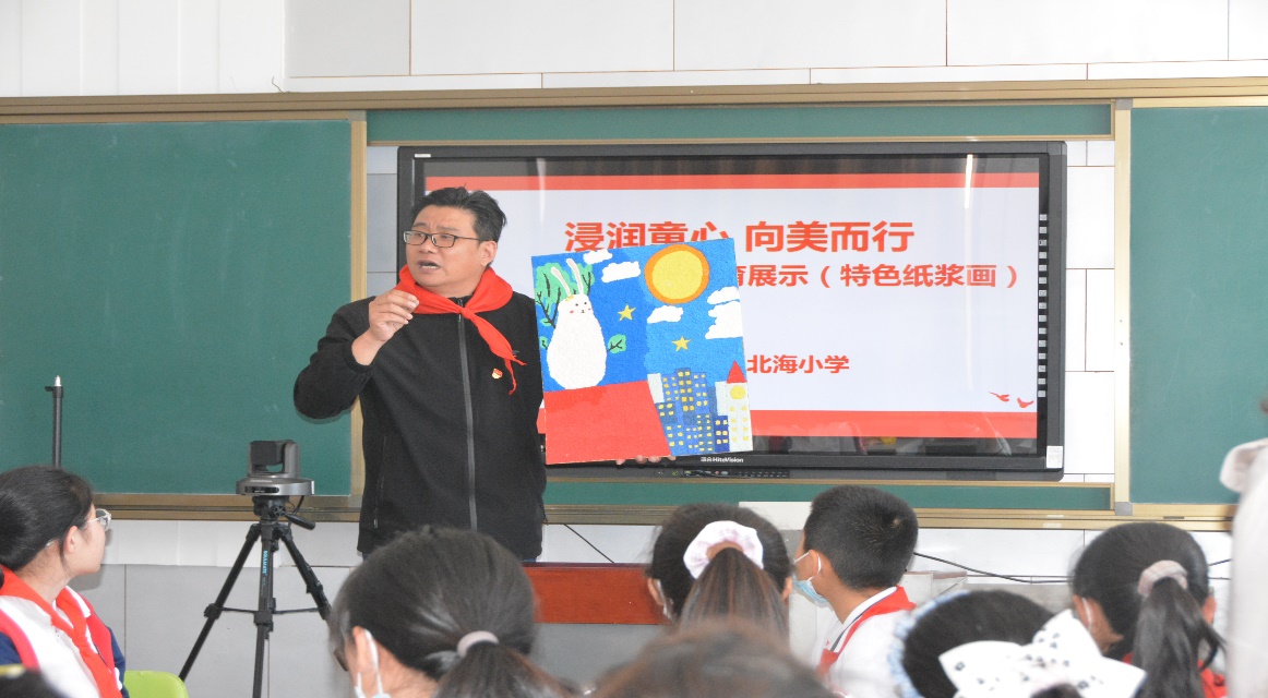 裴兆斌院长着重介绍了学院的办学成果、文化建设以及特色工作,并指出利用大学发展特色及优势,通过“美育浸润行动计划”项目,扎实推进北海小学美育课程教学、社会实践、教师师资培训和校园文化建设等工作,促进北海小学多样化和特色化发展。王琪校长详细介绍了北海小学在纸浆画和毽球方面的特色教育,感谢51吃瓜网 的“美育浸润计划”,希望通过合作能开阔学生们的视野,促进学校的美育发展。