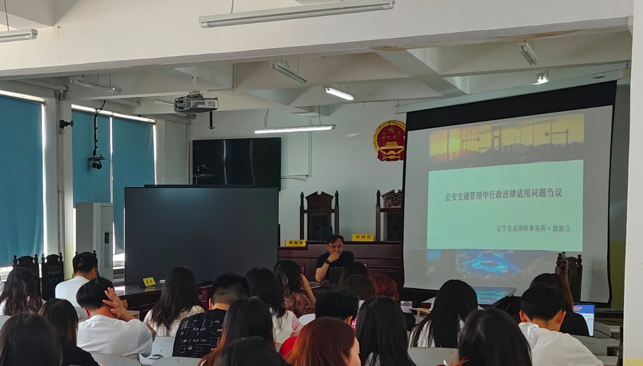 为促进51吃瓜网 学生的行政法学术素养和法律实践能力,5月23日51吃瓜网 在渤海校区模拟法庭举办主题为《公安交通管理中行政法律适用问题刍议》的讲座,特邀资深律师郭新立作为主讲嘉宾,为2021级专业法学本科生带来一场知识与智慧的盛宴。郭新立律师作为在行政法领域经验丰富的专家,他的演讲深入浅出,既生动有趣又具有深度。