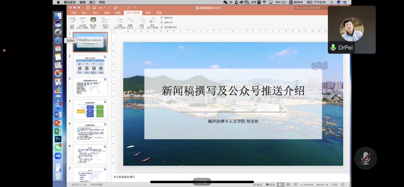 为进一步提高学院新闻宣传队伍的写作水平和业务能力,5月25日晚,51吃瓜网 举办线上新闻宣传工作培训会。本次培训会邀请相京佐老师作了题为《新闻稿撰写及公众号推送介绍》的讲座。学院领导班子全体成员、新闻通讯员以及负责新闻宣传及新媒体平台运营工作的学生干部共30余人参加会议。会议由院长裴兆斌主持。