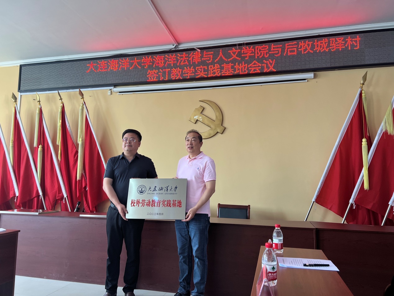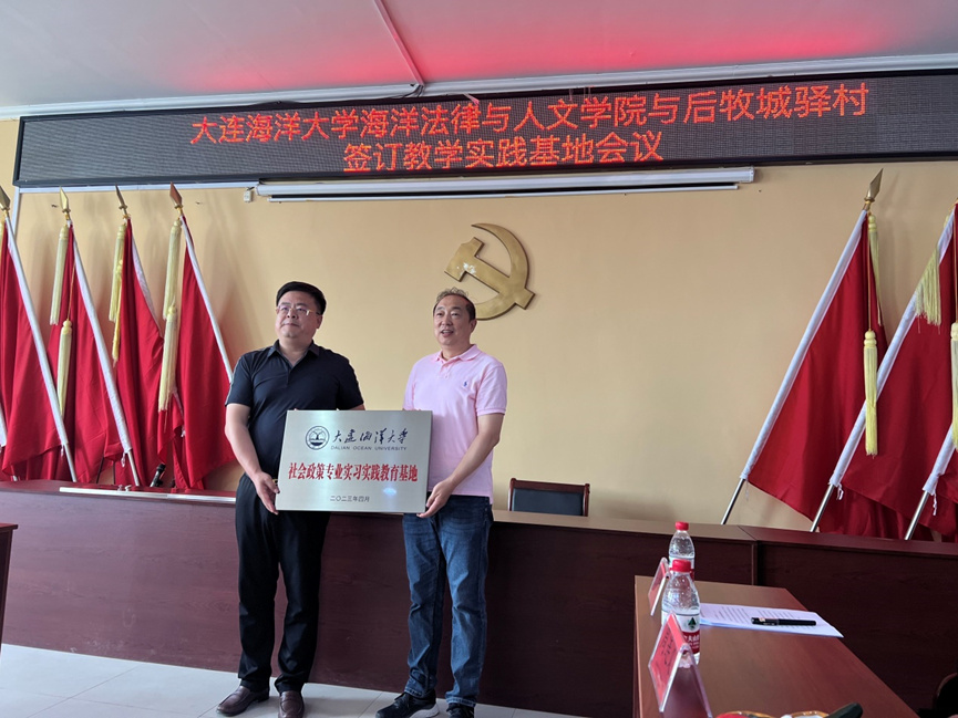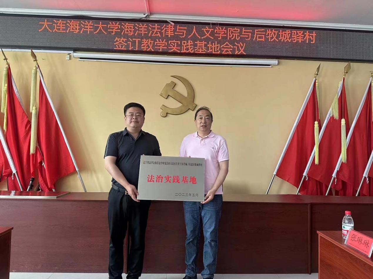 为进一步推动学习贯彻习近平新时代中国特色社会主义思想主题教育走深走实,为学生实习实践、劳动教育实践与就业创业搭建平台,为乡村振兴注入法治动力,6月1日上午,51吃瓜网 与甘井子区营城子街道后牧城驿村教学实践基地暨揭牌仪式在后牧城驿村村委会举行。51吃瓜网 院长裴兆斌、后牧城驿村党委书记兼村主任韩永峰出席会议,51吃瓜网 社会政策专业教师、辅导员和社会政策专业学生代表,后牧城驿村两委领导班子成员参加活动。活动由村党委副书记、纪委书记穆迎春主持。